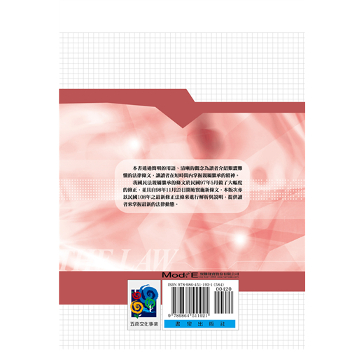 本書透過簡明的用語、清晰的觀念為讀者介紹艱澀難懂的法律條文,讓讀者在短時間內掌握親屬繼承的精神。