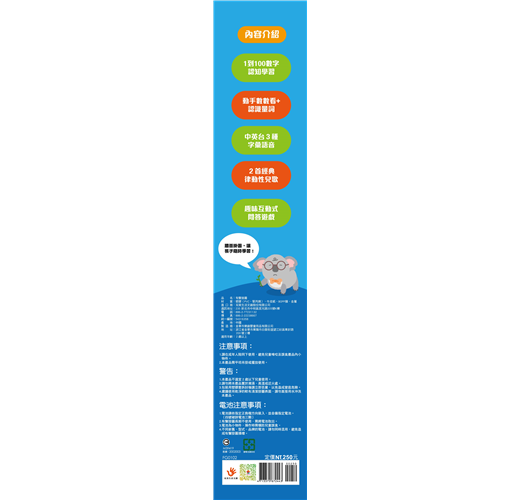 ●重點主題:數字1~100語音學習+數字筆順練習+動手數數認識量詞,搭配可愛又細膩的插圖,輕鬆吸引注意力,培養孩子對數字的敏感度。