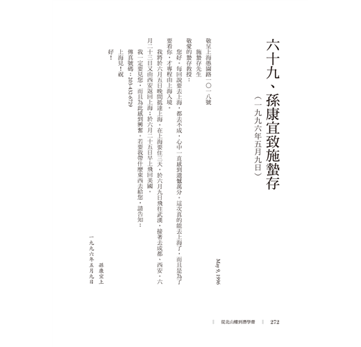 七 十、施蟄存致孫康宜(一九九六年五月二十三日)