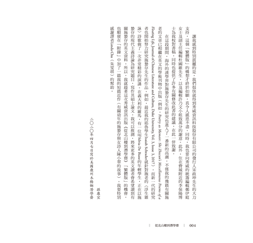 本次臺灣版特別收錄孫康宜英文近作:〈有關幼年的施蟄存與女詩人陳小翠的故事〉(由朱雯琪譯成英文)