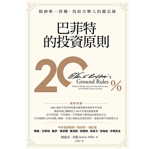 本書遠非只是摘錄巴菲特寫給合夥人的信。米勒替每一章寫了清晰精闢的引言,有助讀者理解巴菲特的重要基本原則。