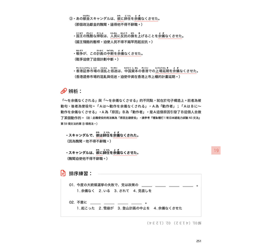 本書不同於坊間書籍多以相近語意的方式編排,是以文法上的結構來做分類,方便讀者全面性地掌握各個句型的接續及文法限制。