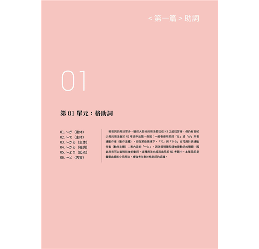 最後,在N1考試當中,無論是文法或是讀解,會使用到N2句型的頻率非常高,因此建議讀者可與本系列的姐妹書『穩紮穩打!新日本語能力試驗 N2文法』併用,相信要考過N1檢定,絕對不是難事!