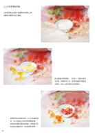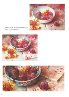 以花卉、靜物為題材的水彩畫繪製流程,大致可分為「對象物的組合&構圖」、「繪製草圖」、「Masking」、「畫紙塗水、從背景開始著色」、(除去留白膠)、「詳細描繪」、(破壞畫面)、「完成」等步驟。當中將在第1章先就流程、在第2章針對每一道步驟的細節和原理,來作實例的步驟解說。