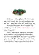 After Heidi’s parents die, she lives with her grandfather in the mountains. She loves her simple life there. Then her aunt sends her to the city to help a sick girl, Klara. Heidi goes to the city, and she becomes friends with Klara. But Heidi misses her life on the mountain. Is there a way for Heidi to help Klara and enjoy her mountain life again?