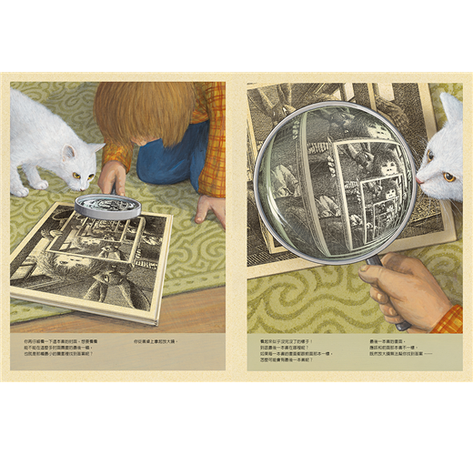 繪者的巧筆與3D模擬,將光學折射、放大效果、以及比例縮放展現出