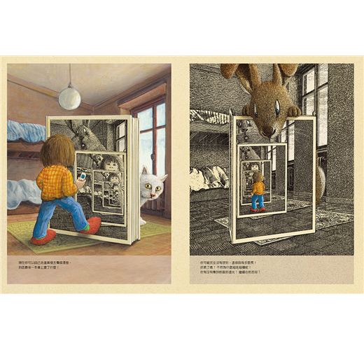 書中無限重複的畫面,激起了小女孩的好奇心,