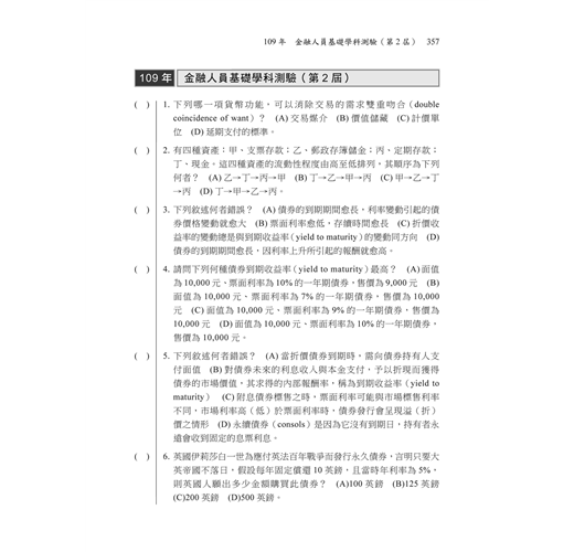 ★加碼收錄最新109年金融基測(貨幣銀行學)試題,題題都有名師帶你解析