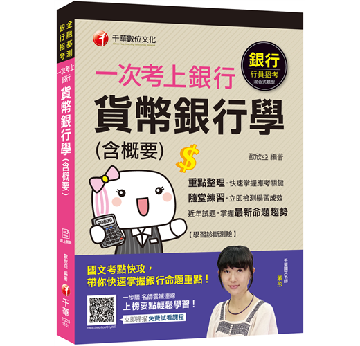 2.銀行學:介紹有關金融市場體制、銀行法等重要規定、商業銀行的經營制度與理論、存款貨幣的創造、準備金、衍生性金融商品及金融監理制度等均為熱門考題。