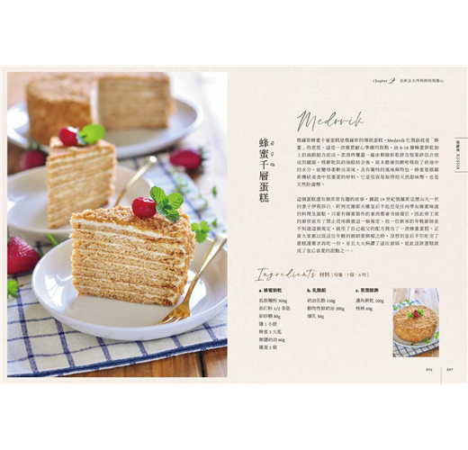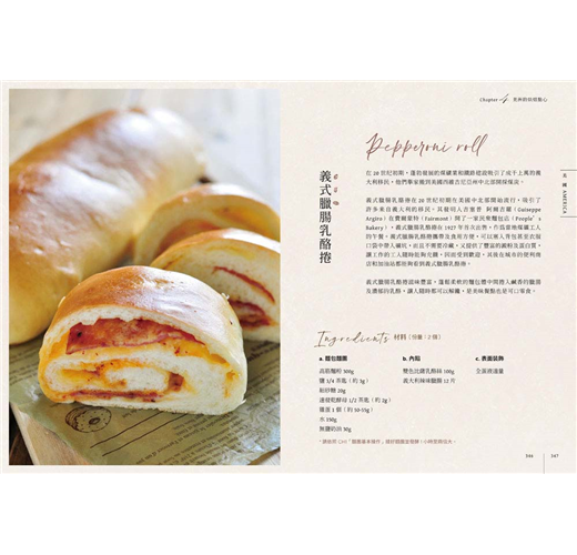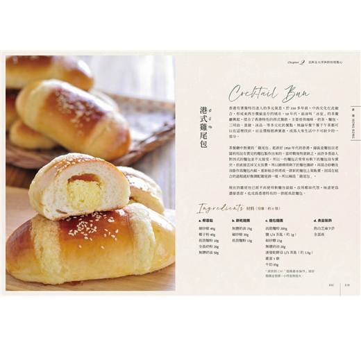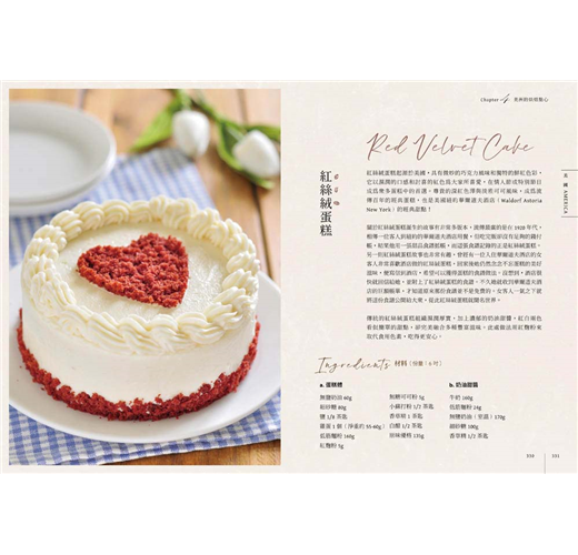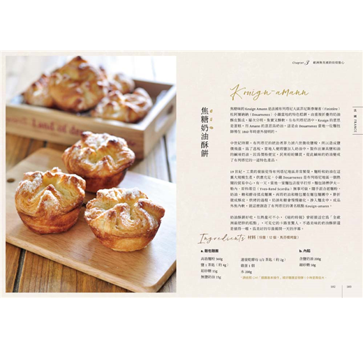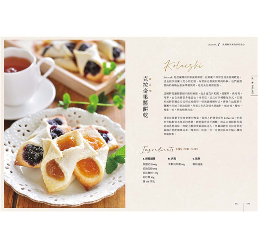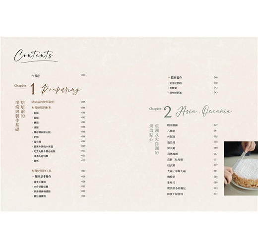 作者序 Chapter1烘焙前的準備與製作基礎 烘焙前的使用說明 本書使用的材料 .粉類 .穀類 .糖類 .油脂 .酵母類與膨大劑 .奶類 .起司類 .堅果&果乾&果醬 .巧克力類&其他粉類 .洋酒&香料類 .其他 本書使用的工具 麵團基本操作 .純手工揉麵 .水合折疊揉麵 .家用攪拌機揉麵 .麵包機揉麵 餡料製作 .奶油紅豆餡 .黑糖蜜 .原味鮮奶油 Chapter2亞洲及大洋洲的烘焙點心 糯米糖餅 八橋餅 外郎糕 地瓜燒 煉羊羹 利休饅頭 萩餅(牡丹餅) 信玄餅 大福(草莓大福) 梅枝餅 生吐司 復活節小鳥麵包 蜂蜜千層蛋糕 港式酥皮蛋塔 糖沙翁 港式雞尾包 香蘭咖椰醬 木糠布甸 澳門杏仁餅 土耳其軟糖 猶太可頌餅乾 澳新軍團餅乾 Chapter3歐洲與英國的烘焙點心 巴斯克焦香乳酪蛋糕 奶油螺旋麵包 西班牙杏仁蛋糕 杏仁酥餅 卡士達酥皮派 皇家夏洛特蛋糕 焦糖奶油酥餅 克拉奇水果乳酪麵包 克拉奇果醬餅乾 猶太洋蔥麵包 白蘭地脆餅 佳發蛋糕 消化餅乾 英式烤麵餅 草莓乳脂鬆糕 蘋果酥 英式鹹肉派 糖霜鮮奶油果醬夾心麵包 挪威杏仁棒 老虎麵包 荷式焦糖華夫餅 新月形餅乾 彎月鹽奶油麵包 瑞士焦糖核桃塔 櫻桃白蘭地蛋糕 瑞典茶環麵包 鮮奶油豆蔻麵包 義大利杏仁餅 義大利淑女之吻 義式甜甜圈 義式薄餅麵包 馬賽克蛋糕 Chapter4美洲的烘焙點心 燕麥椰棗餅 老式甜甜圈 奶油果仁糖 紅絲絨蛋糕 胡桃派 荷蘭寶貝煎餅(德國煎餅) 辣香腸乳酪捲 奶油貝殼麵包