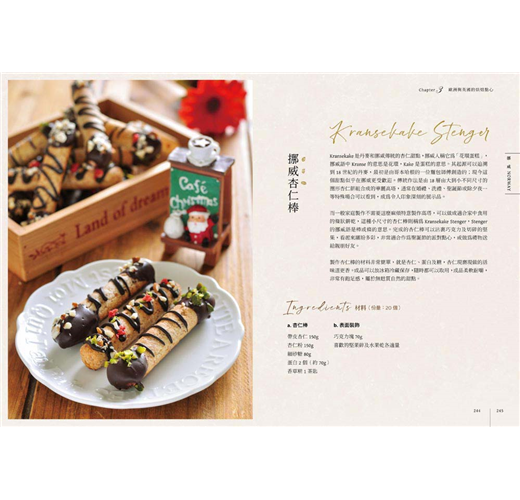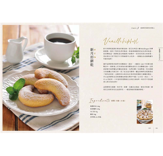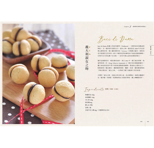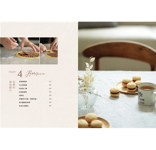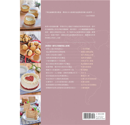 不知不覺走入烘焙的世界已經10多年,完全愛上自己動手做麵包及甜點,日子簡單而美好。一開始只是為了讓家人吃得更安心更健康,但一頭栽進烘焙的世界,就發現其中無窮的快樂泉源,也在廚房找到自己的興趣所在。記錄這些食譜的過程,雖然花費大量的時間與精力,但可以跟大家在部落格及臉書互動學習,每天都過得非常充實而且滿足,也成為自己前進的動力。 因為家中有15隻毛孩子,我是一個沒有辦法出門旅行到處走走的人。常常在社群看到大家環遊世界,分享旅遊心情,還可以嘗試不同國家的美味特產,都讓我十分羨慕。人文風景也許還能夠從照片或文字中去感受,但美食若不是親自嚐過,無論如何是沒有辦法體會的,這也讓我興起何不自己動手製作,探索不同國家的美味糕點。美食無國界,隨著旅遊美食節目的興起,許多美食也被一一揭開了面紗,背後的故事以及獨特的做法也漸漸地被大家了解。藉由美食,我們可以看到不同文化的呈現,促進不同國家的人們互相交流學習,讓喜愛烘焙的朋友也可以認識更多美味的西點麵包。 這兩年多在製作這些食譜的時候其實遇到很多困難,因為有些成品是台灣較少看到的,很多材料不好買或是根本沒有。但我希望將當地傳統的做法保留,口味能夠符合大眾,選擇方便容易取得的材料,又能夠適合家庭製作,在這反覆實踐操作的過程中著實花了一些心力。每每完成一道成品,與先生Jay一同品嚐的時候,都感受到好多驚喜與感動,心情好像也跟著這些美味西點環遊世界了。原來在某某節目上介紹的點心是這樣的味道,就更想好好將這些甜蜜的食譜記錄下來與大家分享。在整理稿子的後期還有一件意外的小插曲,因為外接式硬碟無預警損壞,導致完成的檔案幾乎全部遺失,讓我差一點要放棄此書的出版,幸好兒子Leo成功將檔案救回,才讓此書得以順利完成。還要特別感謝遠在美國的好友君蒂與Stephen夫婦,在我查詢資料的過程給予建議及幫助。 烘焙是生活中不可或缺的一部分,空氣中瀰漫著甜甜的香味,每一次在烤箱前守候都有著滿滿期待與喜悅。因為相同的愛好讓我們遇見,謝謝你們10年來一路的陪伴,所以生活也多了溫暖與情誼。烘焙地圖展現在眼前,即使在小小的廚房也能夠看到廣大的世界。我相信喜愛烘焙的人一定懂得幸福的真諦,把親手製作的點心變成家人甜蜜的依戀,也希望你們和所愛的人分享這份美好。