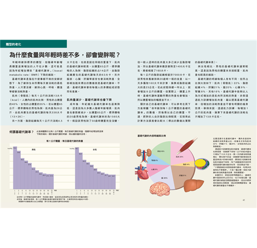 人的老化會表現在各方面,從髮色、皺紋,到視力、聽力、記憶的衰退,以及心、肺、肝、腎、肌肉的退化。而每個人在不同方面老化的速度又不同,所以有必要認識各個器官、組織老化的機制,從而找出不同的對應之道。