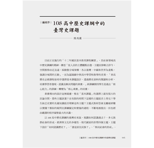 編者序 108高中歷史課綱中的臺灣史課題/陳鴻圖