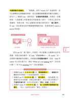 本書最後的部分,針對「動詞+介系詞」、「動詞+副詞」結構的「片語動詞」說明意義與用法,可說是動詞與介系詞核心概念的應用篇。例如 bring up 就是將 bring 的核心概念「拿著什麼,並且把它移動到某個場所」和 up 的核心概念「往某個基準的上方」結合,變成「拿著什麼,並且把它移動到上方」,而延伸出「提起、談到(把話題提高到讓人注意的地方)」、「養育(帶著孩子往上移動)」的意義。搭配書中具象化的圖解,更能「看懂」片語動詞所表達的概念形象,理解片語意義一點也不難!