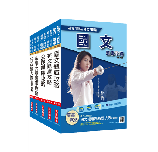 ★初等、地方五等[一般行政]題庫套書,內含:國文題庫攻略+英文題庫攻略+公民題庫攻略+法學大意題庫攻略+行政學大意題庫攻略!★收錄各科歷屆試題,題目全詳解,100%完整解析!★套書附贈公職英文單字[基礎篇],讓您上考場時能夠充份利用零碎時間充實英文單字實力,臨陣磨槍,不亮也光!【適用對象】這套《初等、地方五等[一般行政]題庫套書》適用於報考初等考試及地方特考五等考試一般行政類科的考生。【考試資訊及報考利多】◎初五等考試:初等考試不限學歷,凡是年滿18歲的中華民國國民皆可報考。該考試每年固定舉辦,提供不同領域人才的公職就業機會。考生可依自身學習背景及興趣來選擇自己喜歡的類科,應考科目大多都是學校的必修科目,讓各類科考生在報考時就擁有一定程度的競爭優勢。初等考試只考四科,且全為選擇題型,一經錄取起薪可達三萬元,並享有完整公務員福利,絕對是有心在公職領域打拼的最佳入門選擇!相較於初考由中央政府開缺,全國統一選填志願分發;地方特考則是由各地方政府開缺,採分區報名、分區錄取的方式,工作地點離家比較不會過遠。加上地方特考與初考考試時間差不到1個月,因此以初考為目標的考生也可以加報地方特考五等,一次準備,二次上榜機會。【一般行政類科介紹】一般行政類科工作範圍廣泛,從中央到地方各級單位都有人力需求,每年缺額量多穩定。其工作簡單易上手,且考試科目無特殊專業背景要求,懷抱公務員夢想、喜歡行政庶務的考生,可以優先選擇此類科報名。一般行政的工作內容,由於是針對普通行政事務而開設,因此工作涵蓋很廣,多以例行性事務為主,像是文書處理、事務管理、物料採購、出納、打字等,不會牽涉到太多的專業技能。也因此,考上一般行政類科公務員,將來遇缺所能申請分發的單位,廣度也居各類科之冠,最有機會調回住家附近,因此是多數公職考生的第一選擇!※應試正確資訊請以考試簡章為準※【套書有什麼】◎《國文題庫攻略》2019/09◎《英文題庫攻略》2020/08◎《公民題庫攻略》2020/07◎《法學大意題庫攻略》2020/05◎《行政學大意題庫攻略》2020/07◎ 贈:《公職英文單字[基礎篇]》2020/02※套書出版日期為上架日,實際出版日以各單書為準※【套書內容】一、國文題庫攻略(一)主題式分類題庫本部分依初五等考試國文考科重點內容分為「字形測驗」、「字音測驗」、「字義測驗」、「成語測驗」、「古文及詩詞曲」、「國學常識」、「常用題辭」、「新文藝」、「書信格式用語」、「公文格式用語」十大主題,每題皆有詳細解析,有助考生統整考題性質與出題脈絡!(二)模擬試題本部分收錄5回試題,各回題型仿照初五等考試國文科考題(每回45題,包括35題單選及10題複選),幫助考生熟悉出題方向,有效掌握考試重點!(三)歷屆試題收錄105至108年公務人員初等考試及鐵路特考佐級考試試題,讓考生鑑往知來,掌握國文科考情趨勢!題題皆有詳盡解析,考生在研讀重點內容後,勤做試題演練,考試時必能輕鬆獲得高分!二、英文題庫攻略(一)主題式分類題庫本部分根據初五等考試英文考科的命題大綱,分為「字彙」、「文法」、「克漏字測驗」及「閱讀測驗」等四篇。再依各自的命題重點,分為十餘個主題,每個主題前皆置重點說明,幫助考生掌握考科重點,每篇後另附該篇實力演練試題,讓題庫不僅是練習作答技巧,更是考前重點複習精華!(二)模擬試題熟悉考試題型與出題方向是得分關鍵之一,尤其是閱讀測驗,平常就要養成大量閱讀的習慣,考試時才能穩定發揮實力。本書第二部分〈模擬試題〉收錄10回試題(每回15題,包括字彙5題+克漏字測驗一篇文章5題+閱讀測驗一篇文章5題),各回題型仿照初五等考試英文科考題,透過實戰模擬演練,快速鍛鍊答題技巧與速度!(三)歷屆試題本部分收錄101~109年初等考試及鐵路特考佐級考試試題,共計28份。讓考生鑑往知來,掌握英文考情趨勢!所有試題皆由三民輔考專業名師提供詳盡解析,透過勤做試題演練,必能輕鬆掌握初五等考試英文考科的重點和方向!三、公民題庫攻略(一)分類題庫,抓緊考點作者依據歷年命題趨勢,依據公民考科重點內容,分為「個人、家庭、社會與文化」、「國家、政府與政治」、「民主與法治」、「生產、分配與消費」4大篇390題,每題皆有詳細解析,有助讀者統整考題性質與出題脈絡,增加考生重點與考題的整合能力,且該主題之題目愈多,表示被命題的可能性愈高,讀者可迅速掌握備考方向,得分關鍵不錯失。(二)模擬演練,仿真實戰模擬試題共有5回,作者精研具有命題實益之考點,讓讀者藉由自我演練方式,培養審題能力,迅速找出選擇題命題核心,熟悉題型與出題方向,有效掌握考試重點,方能遊刃有餘地應試。(三)掌握歷屆試題,洞悉考情本書收錄106年到109年初等考試及鐵路佐級考試試題,共10份,題題詳解,概念論述精簡扼要,經濟難題輔以圖表說明,教讀者如何破解題目陷阱,強化判斷速度,分數自然手到擒來。四、法學大意題庫攻略(一)依最新修法編寫新修法就像是考場上一支出奇不意的勁旅,是命題委員慣用來突襲考生的奇兵。本書年年依最新公布條文編寫,不用擔心做到舊法題目。誰能掌握新修法,誰就能掌握未來命題趨勢。(二)依歷年試題分析出題範圍編排1.本書第一部分主題式分類試題:依歷年常考試題分為「法律制定與效