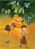「插畫家湯瑪士‧瑞杰可透過書本的跨頁將故事情節完美連結。左右兩面通常描述不同事件,但他使用的顏色與氛圍讓整個跨頁得以相連,讓讀者清楚明白情節的發展。每一頁都是生命某個階段的刻畫,如同各式的風景。湯瑪士的插畫透過現實與想像的對比,距離遠近的改變,技巧高超地將文字的意義凸顯出來,展現高度的豐富性。」
