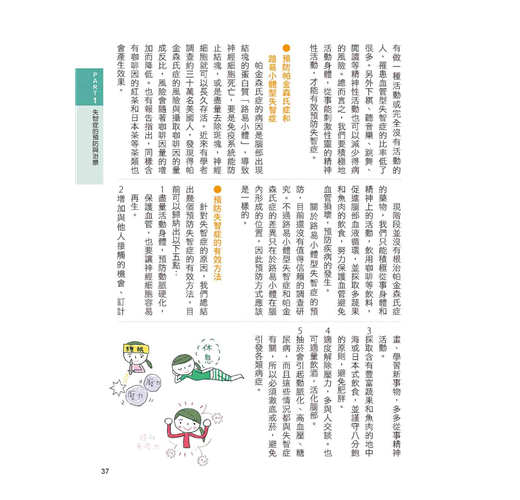 1.淺顯易懂的理論篇:由專科醫師親自執筆,將可能造成腦力退化的因素一一為大家說明,達到避免自己誤踩導致腦力退化的地雷。
