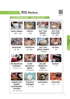 目前台灣的德語教學教材雖然都能教你應付生活中大方向用的到的德文,但單字量往往不夠大量、分類不夠詳細,而且通常沒有圖片做對照,只能單靠文字來想像。例如:關於烘焙的德文,一開始會學到「烤(蛋糕)」的單字是「backen」,若想進一步表達「過篩、攪拌、發酵、塑形」等,以目前的學習,你能精準描述嗎?或是西式料理常用來提味的「迷迭香」「羅勒」「月桂葉」,從中文字面意義,你能夠分辨得出其實際長相嗎?傳統的學習方式讓你好像學了不少,但生活中會用到的單字卻總是零零落落,這個不知道、那個不清楚。