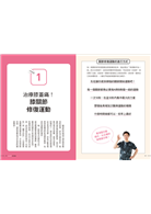 特色3:確實理解!以插畫式透視圖說明各部位肌肉,清楚掌握位置,不會混淆或做錯。關於肌肉、關節與骨骼的相對位置,大多數人都不太清楚,因此書中以容易看懂、線條清晰的「插圖」去表示肌肉位置。在操作動作前閱讀基本概念,有助於加強你對肌肉的印象,在實際操作時就會更有感,可以集中力量在正確的肌肉上。