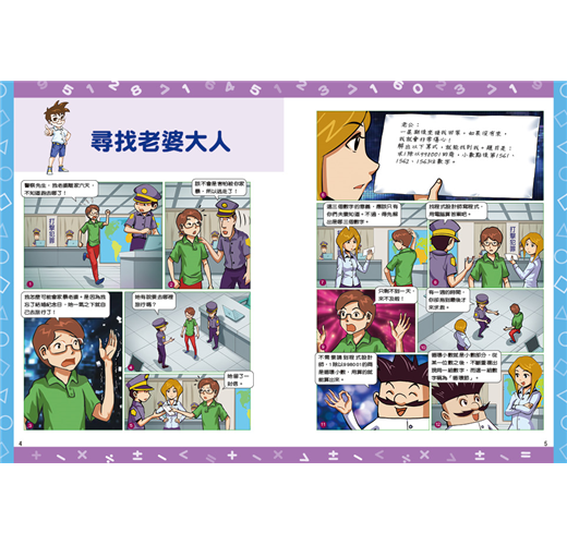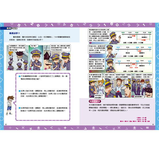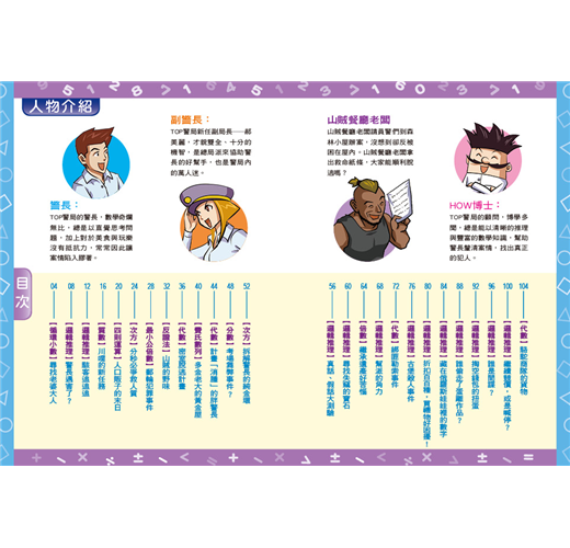 數學無時無刻存在於我們的生活中,本書將惱人的數學知識化為偵探推理漫畫,希望透過解題、推理的過程,讓孩子訓練邏輯思考,建立孩子對數學的信心與積極態度,進而喜歡數學,不再畏懼數學。