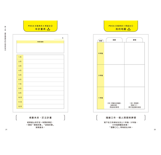 2. 年計畫表:規劃一年間的預定,一想到「想做的事」、「該做的事」就寫進去。