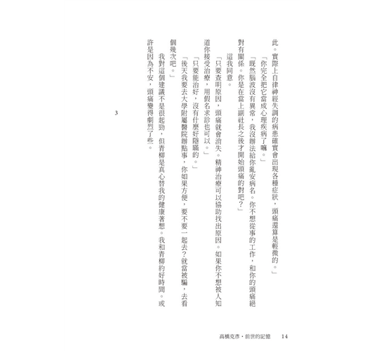受到原因不明的頭痛所惱的主人公,決定接受催眠治療找出病灶。