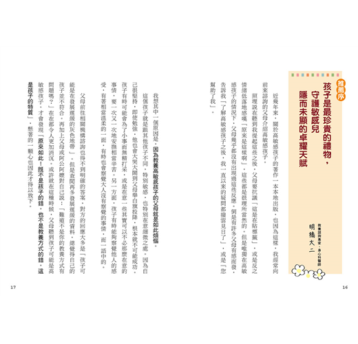 3. 由日本知名兒童心理醫師明橋大二監修,建立親子溝通與教養的橋樑,提供與高敏感孩子相處的正確育兒建議。