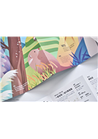 <書衣>選用防水紙張,考量淡蘭山徑系統潮濕多雨,淋濕後完全不會破掉,可以擦乾再繼續使用! 正面以淡蘭古道的代表元素之一「雙扇蕨」作為前景,後面看到的風景是淡蘭北路珍貴的歷史遺跡「舖跡」,四周則是最典型的淡蘭山徑風景-綠意盎然的樹林、常見的植物、被青苔附著的石頭以及蜿蜒的山徑。