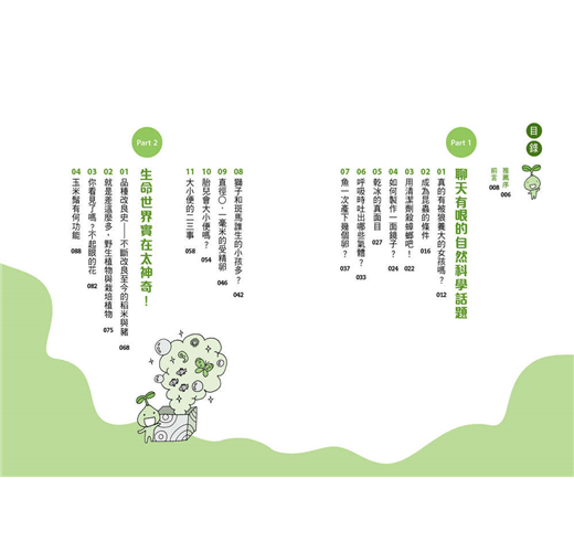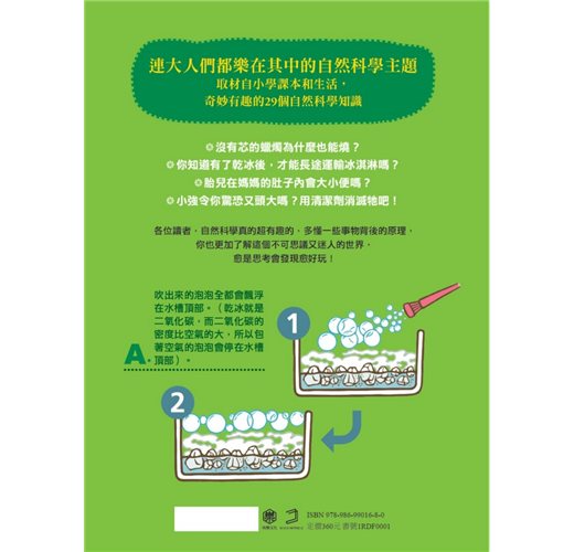─科學素養讀本:科學素養是人們看待自然現象時保持好奇心,從中思考問題、進而設法解決問題的一種涵養。閱讀有趣的課外科學書籍,並呼應學校上課內容,培養孩子的科學素養。