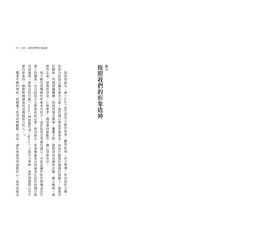 他從宗教文獻、歷史、考古出土材料、認知科學研究成果,探討人類如何建構出宗教。綜觀人類歷史,人一直在尋找周遭事物的意義。尋找意義的過程中,也不斷將人的屬性賦加於神,創造出「人性化的神」。無論是信奉唯一真神,信仰眾神,或是無神論者,都用自己的形象塑造神。多數人想到神時,想像的是「神聖版的自己」。