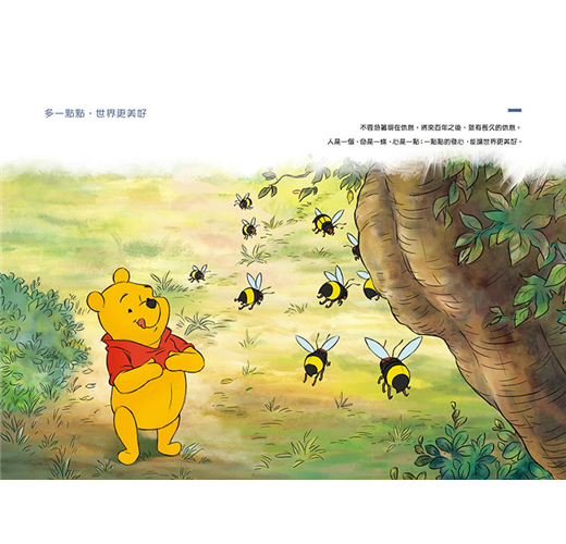 這次維尼要述說星雲大師的幸福觀點和名言,只是三言兩語,一字一句猶如菜根 ,也像蜂蜜,清香有味。那麼,就讓我們在愛裡,再次與小熊維尼相遇擁抱吧!