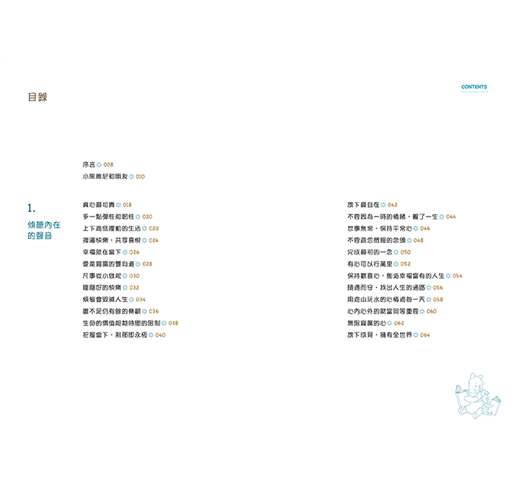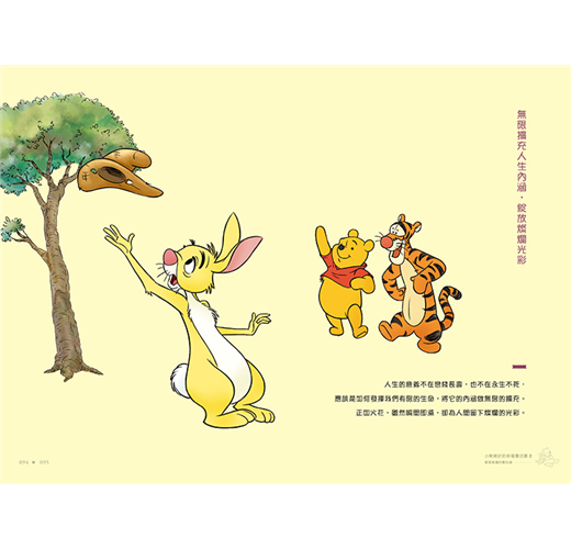 該怎麼做,才會快樂?該怎麼做,才能有愛?外在環境看起來總是不斷變化,其中會有一些我們無可奈何的事情。此時,小熊維尼說話了:只要隨時傾聽自己內在的真心,記得自己是誰,那麼就不會迷失了。