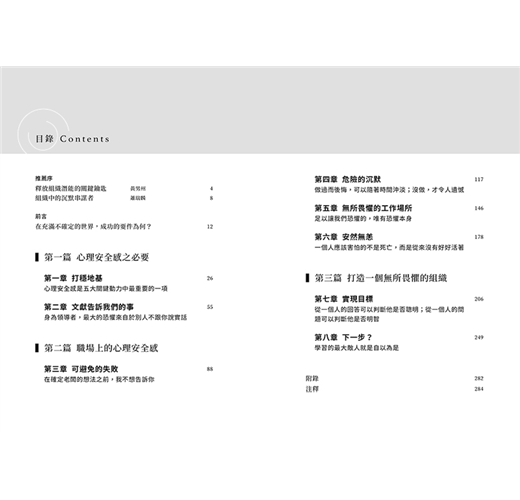 「本書所傳達的重要訊息是:領導力召喚我們打造一個成員可以安心分享想法的工作場所,而犯錯則被視為學習的機會。建立一個無所畏懼的組織,不僅是該做的事,而且將是最終的競爭優勢!」