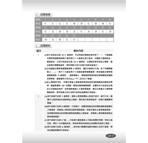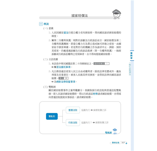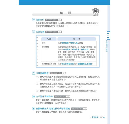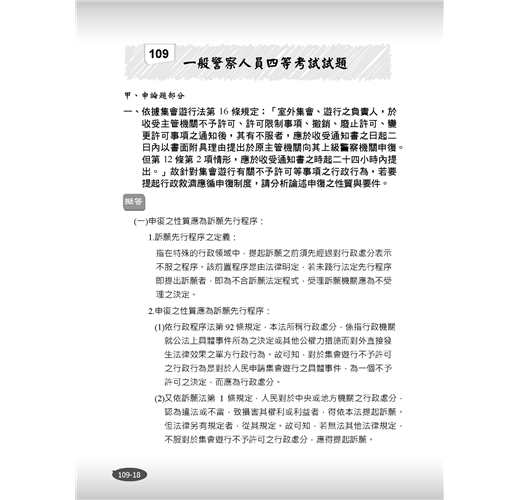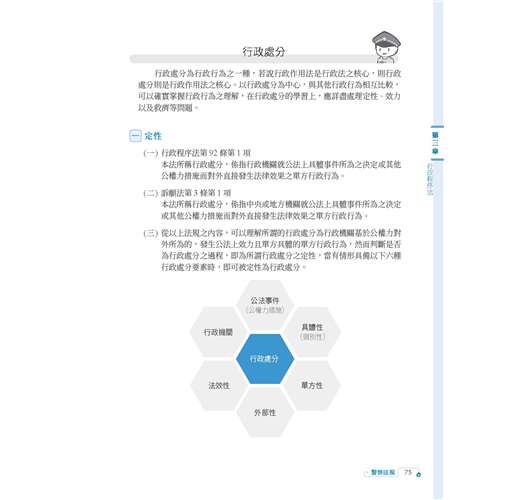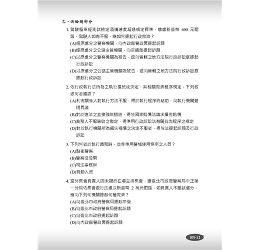 ★2020年最新修正法條收錄!★收錄最新105-109年警察人員歷屆試題,100%題題解析!★題庫全詳解,選擇題+申論題共270題,每題皆有詳細解題!【常見問答】Q1:本書內有包含題庫嗎?A1:本書除了重點整理以外,還包含105-109年警察人員試題共10份,100%題題詳解。Q2:覺得這本的題目還不夠練習,手很癢怎麼辦?A2:本社另有發行題庫書《警察法規概要題庫攻略》,比這本《警察法規概要》單書多了500道題目(主題式分類題庫+3回模擬試題)可供考生進一步演練。但考生如想在短期內完成「濃縮的重點整理閱讀+適度的歷屆試題演練」時,這本《警察法規概要》將助您上考場應試可以穩穩一戰。Q3:請問本書是最新的法規嗎?A3:本書收錄至出版日前之最新法規。【考試簡介】110年一般警察特考報名日期為3月9日至18日,考試日期為6月19至20日。懷抱著警察夢的人,即使錯過了警專、警大,只要年滿18歲未滿37歲,具有警察學校以外的高中職以上學歷(無須役畢),也可透過警察考試進入警界。通過警察四等考試,每月實領薪資上看6萬元。民國100年開始招考的「一般警察特考」排除警校體系,僅限一般民眾報考,沒有警校生競爭,加上每年錄取名額多,錄取機率高,是民間人士加入國家警察團隊的最佳管道。一般警察四等考試分為「行政警察、消防警察、水上警察」三大類科。其中行政警察的專業科目為「刑法概要、警察法規概要、犯罪學概要」共三科,皆為申論選擇混合題型。四等行政警察就是一般民眾最常見的派出所警員,職責以較低危險性的外勤工作為主,包括派出所值班、備勤、戶口訪查、交通指揮、酒駕欄檢、臨檢、巡邏等。在一般警察四等考試三大類科中,行政警察的特色就是每年開缺很多,特別適合具有法律背景,對第一線基層警察工作有熱忱的青年報考。準備行政警察考試同時,再多讀「監獄學概要、監獄行刑法概要」2科也可一併攻略110年8月筆試的司法四等監所管理員考試,增加上榜機會。【本書適用】這本《警察法規概要》適用於一般警察人員四等(行政警察)考試、警察人員特考(警察特考)三、四等考試、警察人員升官等考試.沒有學過法律的一般考生也能來考行政警察嗎?.警察法規種類那麼多,哪些最常考?.申論題要怎麼寫才會高分?選擇題要怎麼判斷才會準?以上關於考生對《警察法規概要》這科所面臨的問題,三民輔考老師都知道,本書將帶您解決困惑,取得高分!【本書優勢】本書的分章與主題對照考選部〈公務人員特種考試一般警察人員考試四等考試命題大綱〉設計:一、掌握重點:警察法規種類眾多,範圍較廣。作者考究歷年考古題,以命題大綱為經緯,寫成本書四大章13個主題,緊扣出題方向。重要觀念附有特別說明,易混淆的概念使用表格歸納整理,透過互相對照,釐清概念毫不費力。作者深知準備考試,時間就是實力,遂以自身法學專業,費時研究與匯整雜散的警察相關子法、大法官釋字與實務見解,務期節省考生蒐羅資料的光陰,將這些寶貴時間轉至重點研讀,讓其他考生漸漸看不到你的車尾燈。二、關鍵顯眼:作者將考究歷年考古題所得之關鍵重點,以顯眼特殊設計標示得分關鍵字,讀者可立即知悉被頻繁命題的考點,將記憶力花在刀口上。每章最末附有精選試題,可透過單元練習檢驗自我學習成效。本書猶如囊袋,縱使警察法規命題範圍寬廣,只要本書在手,考生讀來也有如探囊取物之易。三、100%題題詳解:本書收錄105~109年一般警察人員四等與警察人員特考三、四等公務人員考試試題共10份,題題詳解。申論題具備考點層次解析,選擇題教讀者如何選對選項。作者欲憑此書,讓讀者面對選擇題,箭箭中鵠;面對申論題,解題思路澎湃縱橫,不絕於卷上。配合最新法規精心修訂,掌握最新命題動態,必能掌握考試致勝關鍵!【本次改版修法重點】本書收錄至出版日前之最新法規,改版修法重點包括:1.公務員懲戒法(109.06.10公告修正)(1)配合公務員懲戒委員會更名為懲戒法院,並設懲戒法庭專司審理公務員懲戒案件,爰將第五條條文「公務員懲戒委員會合議庭」、「公務員懲戒委員會」之文字修正為「懲戒法庭」及「懲戒法院」。懲戒法庭所為之停止職務處分,本質上為法官就個案衡量後所為之司法決定,應以裁定方式為之,而非僅以通知方式函知主管機關,且現行實務上認有先行停止職務之必要者,亦係以裁定為之。鑑於原規定易生誤解,爰就第五條第一項酌作文字修正。(2)現行公務員懲戒判決執行辦法第十條雖已就司法懲戒與行政懲處競合之情形有所規範,惟此等事項體例上應於法律中規定較為妥適,爰增訂第二十二條第三項,明定司法懲戒效力優於行政懲處。2.智慧財產及商業法院組織法(109.01.15修正公布)(1)商業法院以三人合議審理,採二級二審制,掌理商業事件審理法第2條第2項所定重大商業事件之審理(修正條文第2條、第3條、第6條)。另將智慧財產法庭及商業法庭分流,落實專業審理(修正條文第9條、第10條、第15條),且商業專業法官得以遴選具有商業專業之律師、中央研究院相關研究人員或公務人員擔任(修正條文第14條)。(2)設置商業調查官,由具備會計、投資、財務分析、經濟及金融市場等專業人員,協助法官蒐集、分析、判斷商事專業資料及問題(修正條文第16條、第17條)。3.社會秩序維護法(108.12.31公告修正)關於「(聲請或請求)易以拘留」之性質,向有「處罰轉換」