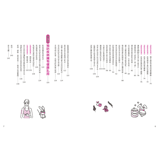 第3章 預防疾病擁有健康乳房介紹可能發生於乳房的相關疾病、基本的症狀判別方式、乳房的日常自我觀察與檢測方式、目前主要的乳癌篩檢方法、相關就醫建議。