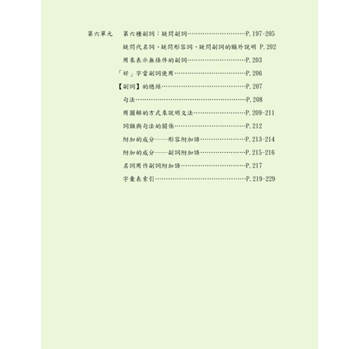 擺脫老學究的枯燥教條式陳述,以輕鬆簡單的方式,講解看似複雜的中文文法;搭配豐富的圖解,使學文法不再枯燥乏味。