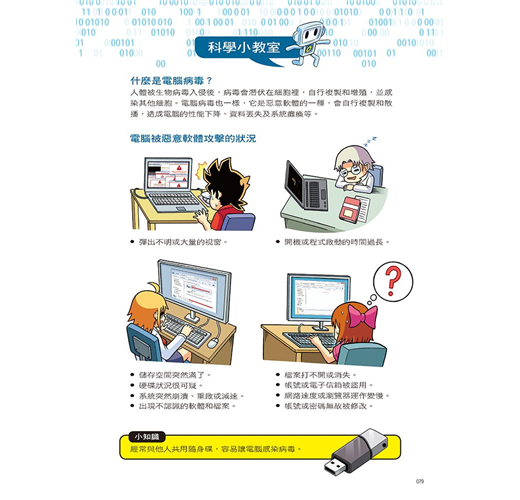 STEP 2知識專區∣科學性★★★★★設有「科學小教室」單元,藉由X科幻冒險隊隊員的生動對話和淺顯易懂的文字,來介紹駭客和劊客、電腦病毒、惡意軟體、防毒軟體、遠離網路詐騙的方法、網路購物的注意事項、如何抵抗網路的誘惑等超炫知識,讓小朋友有系統的學習。
