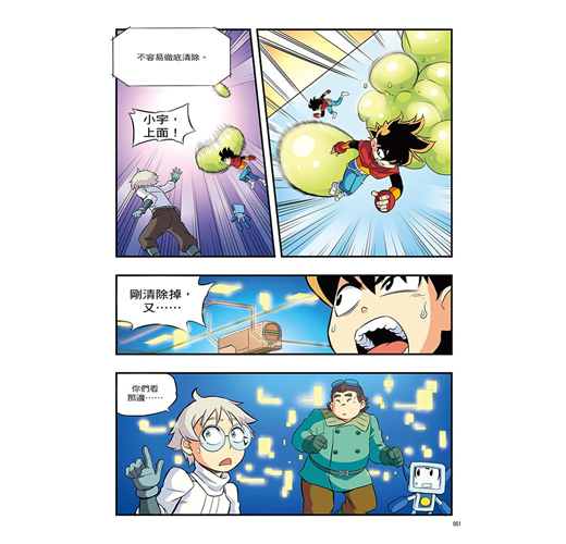 只要學習3步驟,趣味漫畫+驚險故事=開啟知識之門,培養小小科學家!STEP 1情境學習∣教育性★★★★★圖像式漫畫結合生動可愛的人物和驚險刺激的故事編排,加深小朋友對於科學知識的理解和如何運用在生活中,激發他們對自然與科學的好奇心。而書中團隊合作的故事,則可培養小讀者們建立勇於挑戰與冒險的精神,藉此養成體貼他人的個性。
