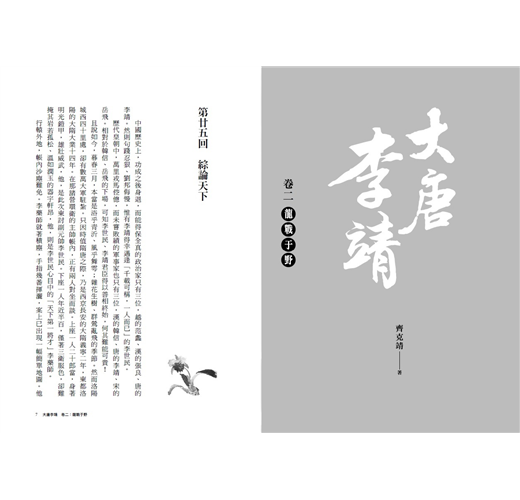 今幸有吾友齊克靖,因使命之感立願為李衛公正名而作《大唐李靖》,用細緻入微的觀察力,為讀者梳理關聯得自文獻考據及實地考察的歷史資料,拾遺補缺的同時發揮想像,讓我們看到一個波瀾壯闊激動人心的歷史時代的一個血肉豐滿引人入勝的人物故事,讓今人重新認識李衛公。