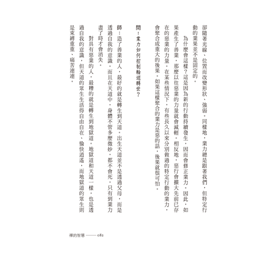 我既不是無所不知,也不是西方文化的專家。我是佛教的法師,承襲了禪宗兩個宗派(曹洞宗與臨濟宗)的傳承。「傳承」意謂我的師父肯定了我的修行體驗。我具有佛教的文學博士,以中英文發表過有關佛教的文章。我沒有宣稱我的答案是終極的真理。然而,禪的原則是超越時空的。雖然我的回答來自於一輩子的研究和訓練,但我相信沒有違背佛法。(摘自英文版第二版序)