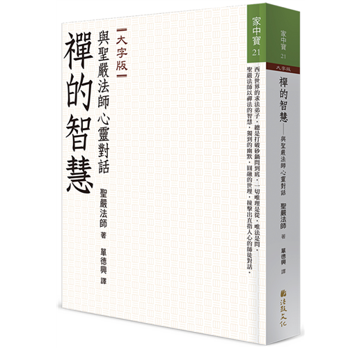 我在西方社會中弘揚佛法,也發行了一份英文的季刊《禪》雜誌(Chan Magazine),它的編者和讀者群,同樣希望我能就他們於西方社會的學佛生活中所遇到的疑難,給一些指點。他們有一組人,預先設想了一個一個的問題,每週一個晚上,用兩個小時,坐在紐約禪中心(Chan Meditation Center)的地板上,圍繞著我,輪番發問。逐篇刊出後,編成一書,名為《禪的智慧》(Zen Wisdom)。