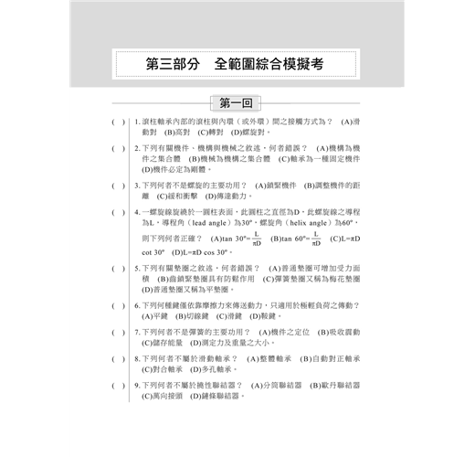★這是市面上收錄題目最齊全的機件原理題庫書,還有附上考前重點整理喔
