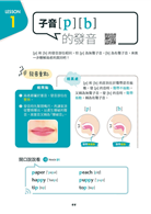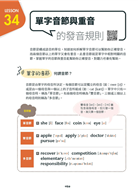 第三部分就是字詞與句子的發音規則,主要是強化讀者的口說能力。內容除了名詞複數、所有格,以及動詞現在式第三人稱單數及過去式的發音規則外,還有重音、語調,以及連音、弱音、消音、變音、閃音、喉塞音等各種發音現象,最後再簡單介紹美式英語與英式英語發音的差異,透過這些單元設計,一網打盡各種發音的難題。