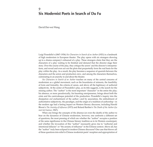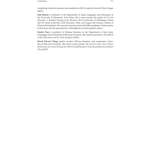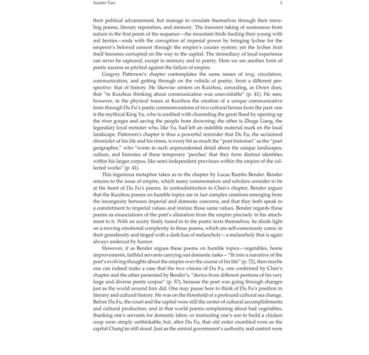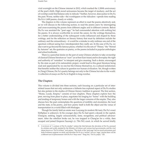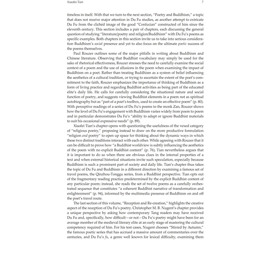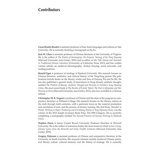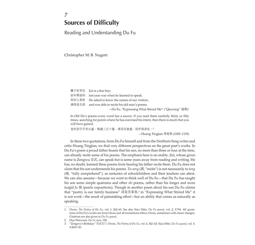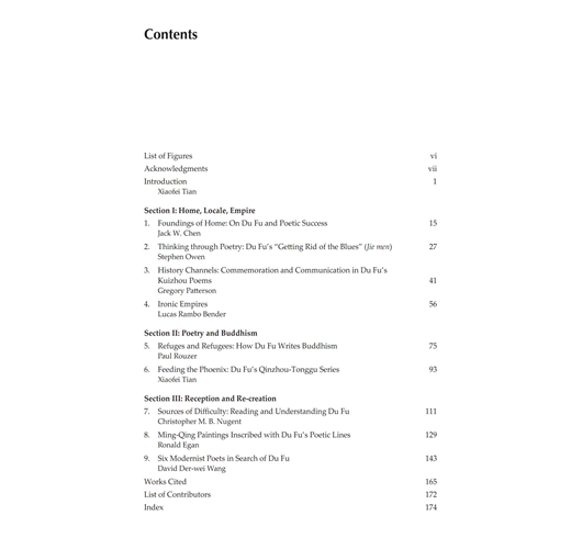 “The scholarship that went into this collection of essays is extremely solid and fills an important gap in the study of China’s greatest poet Du Fu. The convincing and compelling collection of articles from distinguished scholars rereads Du Fu from fresh and different perspectives and informs the reader about the amazing power of intertextuality.” ―Kang-I Sun Chang, Yale University