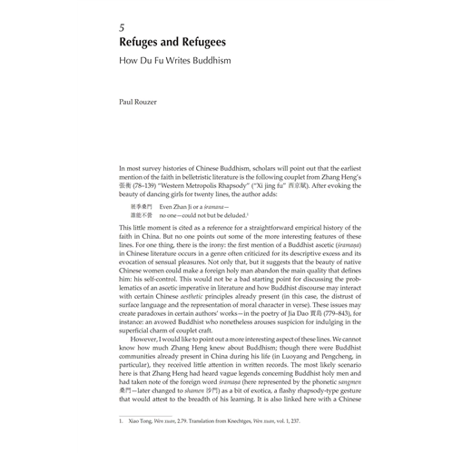 “This rich and multilayered collection of essays about Du Fu, all written by major scholars, presents research of the highest quality and originality that succeeds most impressively in enriching and deepening our knowledge and appreciation of this great poet. This volume has the potential to engender a new stage of Du Fu studies.” ―Antje Richter, University of Colorado, Boulder