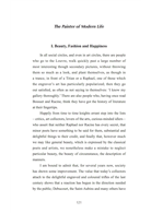 他在本書中探討了美感、時尚、修飾作風、藝術目的以及藝術家角色等話題,並描述了他認為能把現代生活的戲劇性表達得最淋漓盡致的畫家。