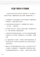 唐納‧川普(Donald Trump),他是美國極具傳奇色彩的地產大亨,是美國夢的最佳代言人,也是備受爭議的億萬富翁。他在房地產開發的成就聞名全球,80 年代靠著開發豪宅美廈崛起,紐約有十數座以川普為名的大樓。在90 年代初期他一度跌落谷底,負債92 億美元,瀕臨破產,又一次次爬起,成為身價上億的地產大亨。勇於冒險的他,參選總統,是他最大的一次冒險。在媒體與民調的一片唱衰中,川普竟然逆襲成功,當選了第58 屆的美國總統!從地產大亨,搖身成世界強權的領袖,他是當選的美國總統中最富有、公職經驗最少、爭議最多的總統。