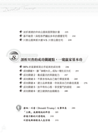 我們看到了個性張揚的川普、一段段高潮跌起的商戰風雲、一個個充滿刺激的投資故事,向我們展示了川普的傳奇人生。透過本書我們能看到一個真實的川普,看到川普是怎樣工作,怎樣生活和如何思考的,又是如何與那些競爭者、反對者鬥智鬥勇,看到一個比你有錢還比你努力的人。本書側重描述其在地產事業上是如何一步步飛黃騰達的,更展現了他出色的市場觀察能力和危機處理的能力。川普從父親那裡學習到的傳統商業常識,對商業價值的認知,及其優越家族背景賦予他的眼界和知識,睿智果決的談判技巧,均在他的創業之路上逐一展現,印證了「美國夢」的實現。