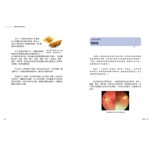 •護眼食品別亂吃!體質/食品特性相符更重要!眼病急性期以西醫搶救視力,輔以中醫從本改善體質,結合西醫藥物或雷射,中醫內服藥、針灸、溫敷、食療等全身調養,建立人體完善的氣血循環,恢復眼睛自癒力。