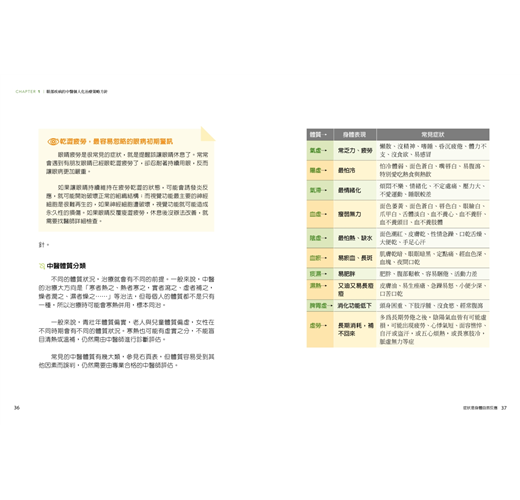 附中醫體質量表,方便從個人生理特徵找相對應的食材。